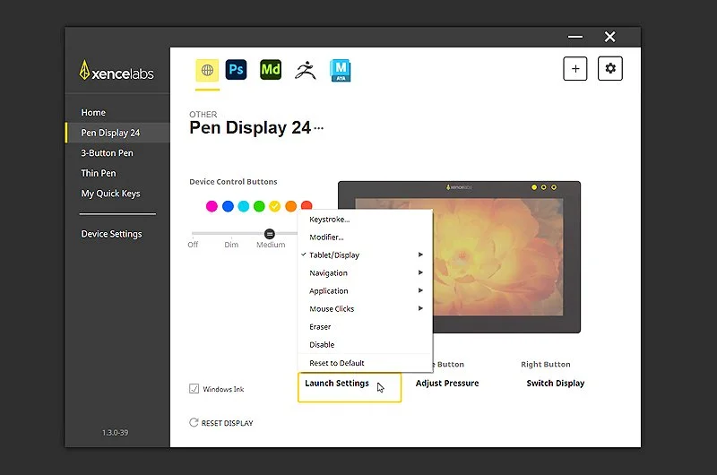 Next you download the latest driver from the Xencelabs website, install them and when you run the software it should recognise the display, remote and the pens and open them up to be configured.