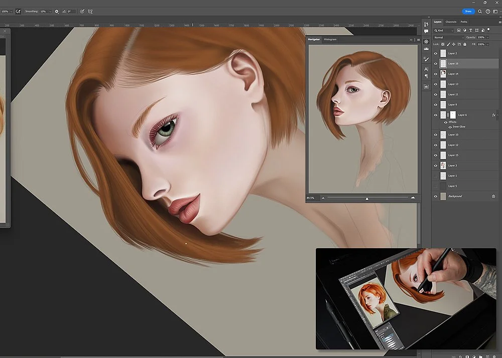 With those tests done it was time to get to work, so I started to create a simple portrait to try the pen display in real world conditions and just like the 24, the Pen Display 16 performed excellently.