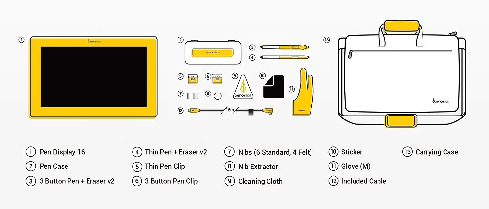 There are currently two options available to you with the Pen Display 16, the essentials package and the bundle. These differ in price and contents so it’s worth taking some time to consider which is the better option for you, and deciding may not be straight forward depending on your own setup.