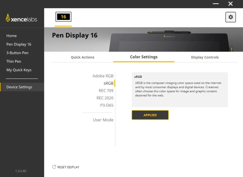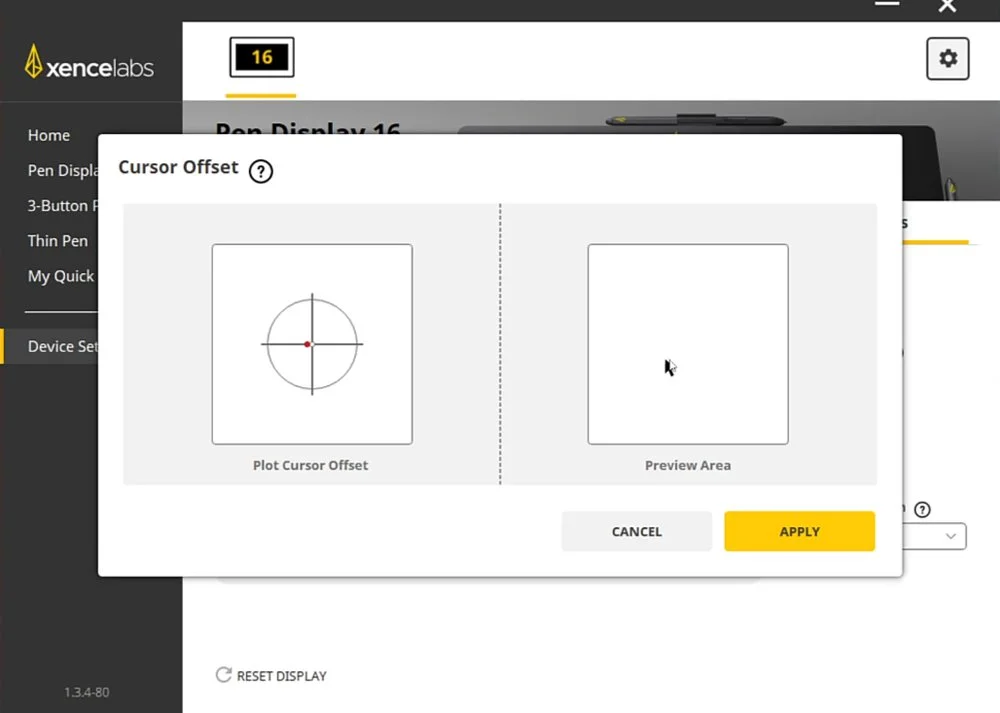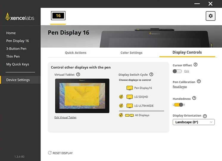 In the Xencelabs software go to the Device Settings tab and then go to the Display Controls option.
